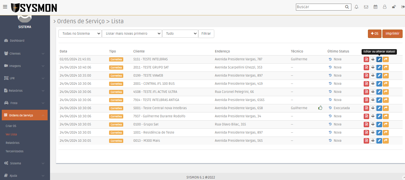 Controle diretamente no SYSMON, ordens de serviço e Frota: