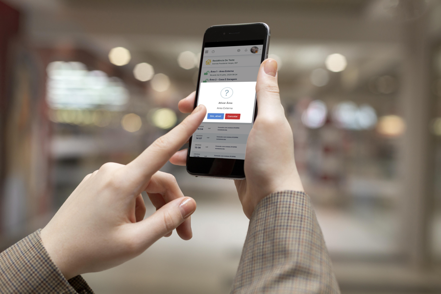 ativação e desativação, verificar o status do sistema de segurança, botão de pânico móvel e imagens*.